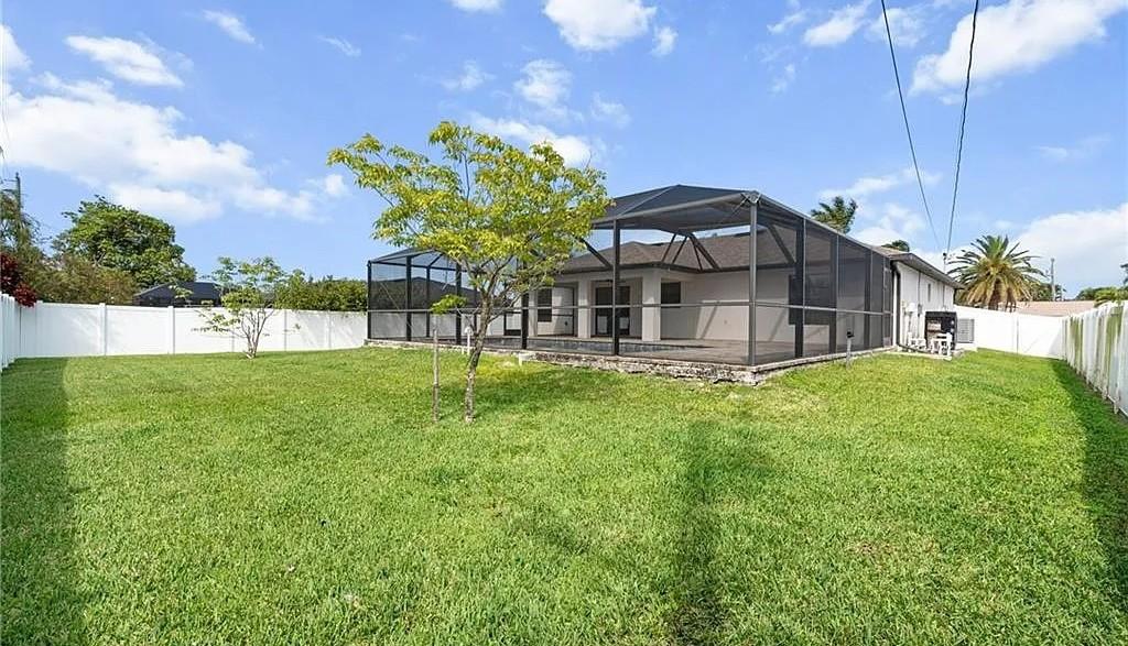 Out back, enjoy beautiful sunsets from the west-facing pool area, which includes a screened enclosure and a generous covered lanai—ideal for relaxing or hosting friends. The fully fenced backyard adds an extra layer of privacy.